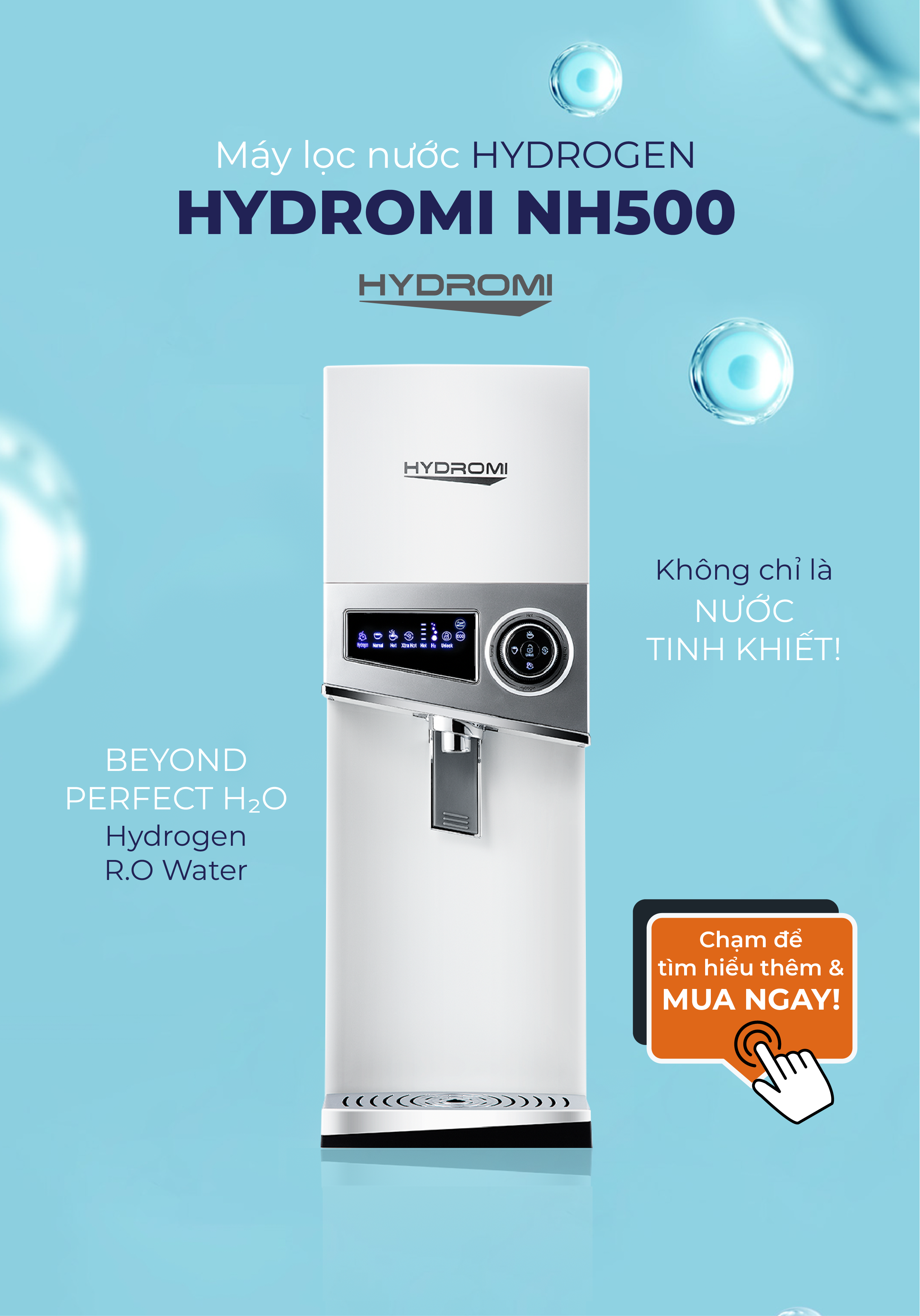 Khi “tinh khiết” vẫn chưa đủ… Với sự kết hợp hoàn hảo giữa hệ thống lọc R.O 5 cấp nổi tiếng của Bio Pure và công nghệ đột phá về hydrogen, Máy lọc nước Hydrogen: Hydromi NH500 có thể tạo nước tinh khiết hydrogen R.O tức thì với hàm lượng hydrogen và độ tinh khiết cao, đáp ứng đầy đủ nhu cầu hàng ngày của cả gia đình. Tinh khiết là nền tảng thiết yếu, nhưng khi bạn cần nhiều hơn thế, Hydromi là một lựa chọn đáng để cân nhắc. Hydromi – Không chỉ là H₂O tinh khiết.