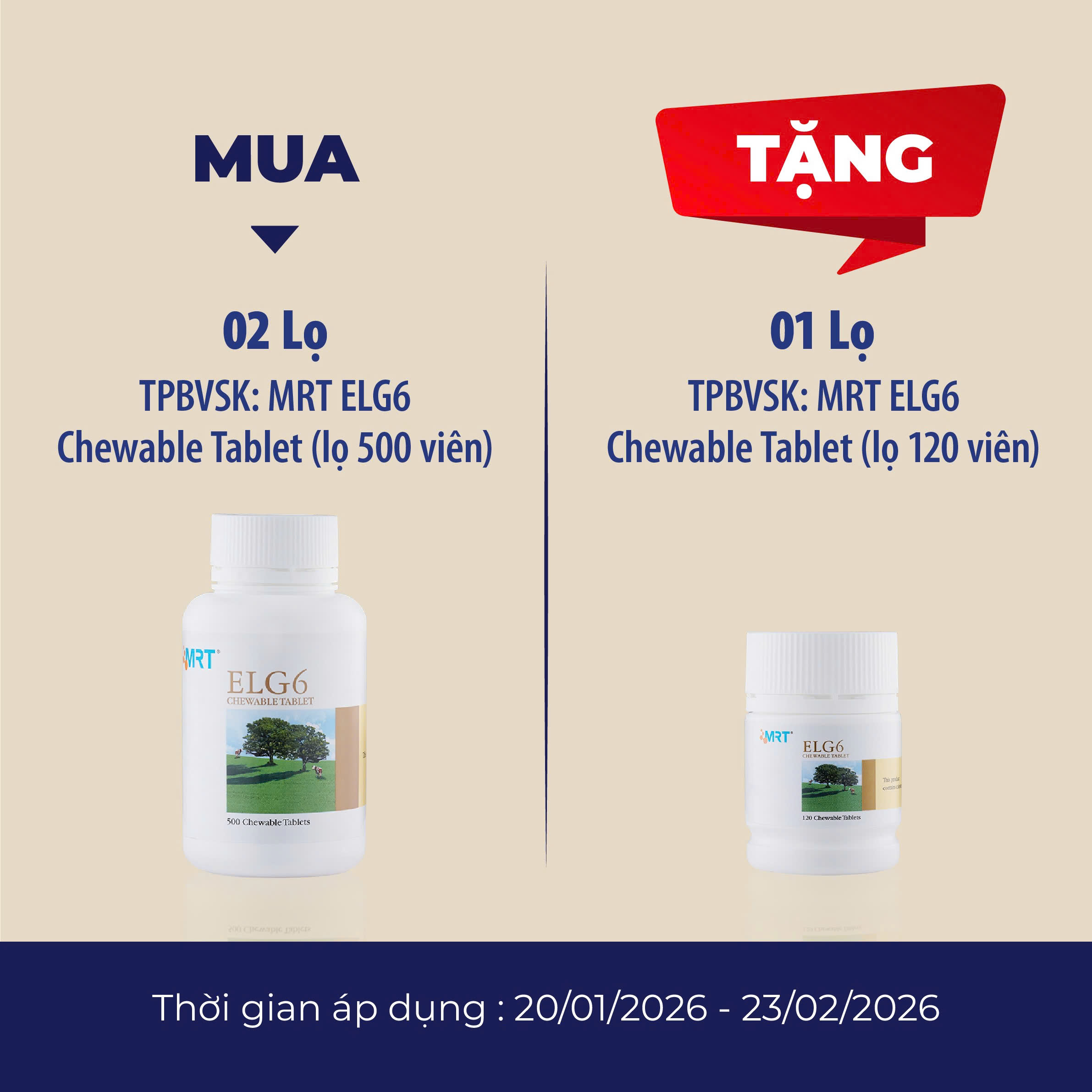 MUA 02 TPBVSK MRT ELG6 CHEWABLE TABLET (LỌ 500 VIÊN) - TẶNG 01 TPBVSK MRT ELG6 CHEWABLE TABLET (LỌ 120 VIÊN)