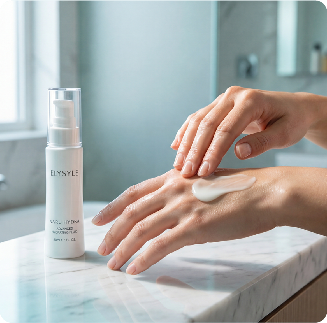 - Sữa dưỡng ẩm: Elysyle Naru Hydra Advanced Hydrating Fluid là BƯỚC 3 của quy trình chăm sóc, dưỡng ẩm da của bạn: