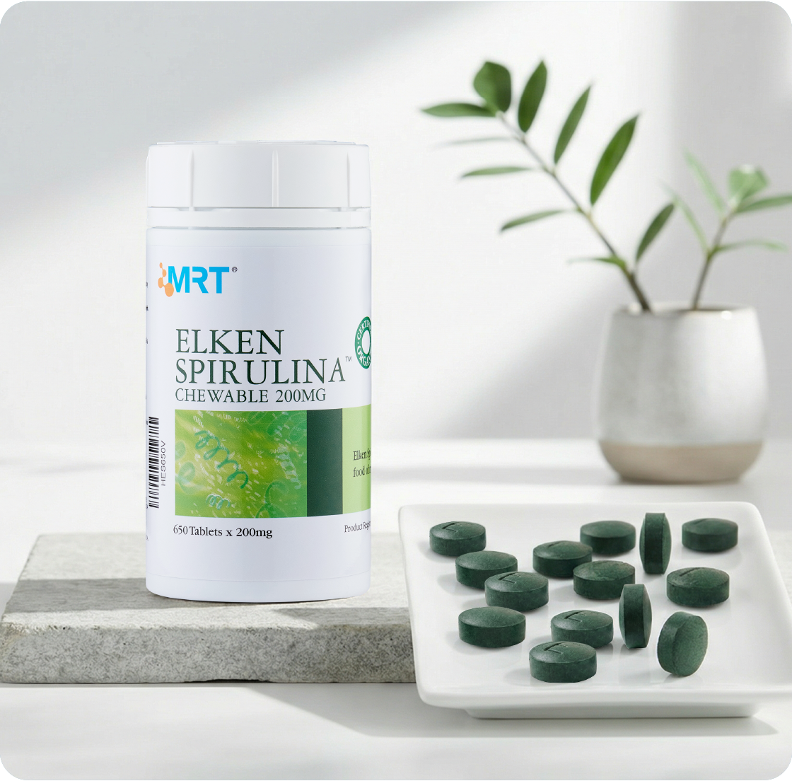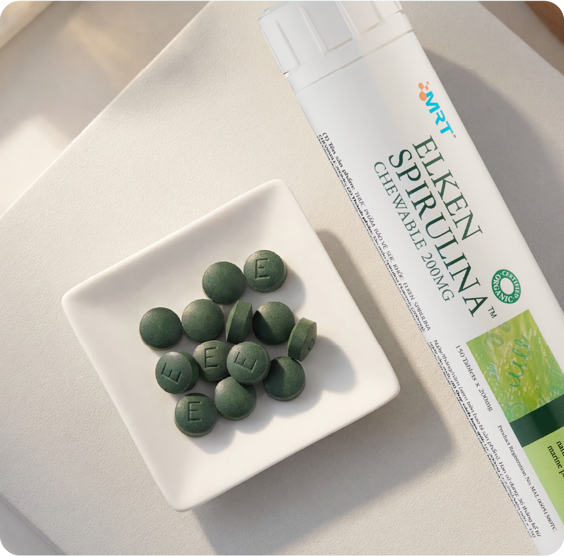 - TPBVSK: Elken Spirulina Chewable 200mg (lọ 150 viên): 200mg(±7,5%)/viên x 150 viên/lọ