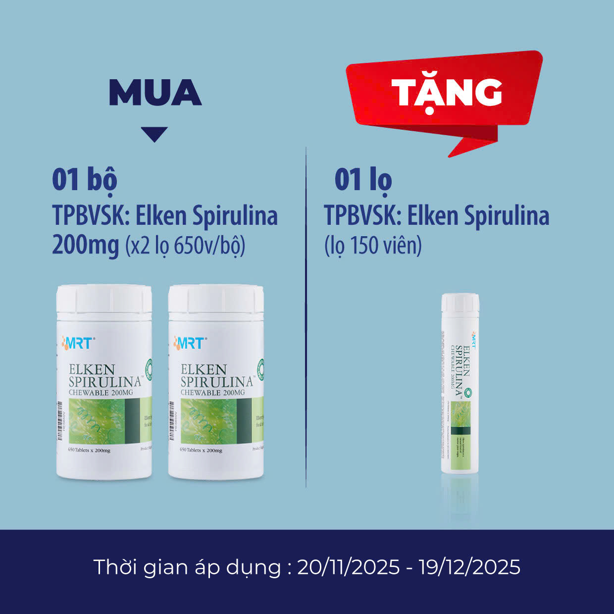 MUA 01 BỘ TPBVSK ELKEN SPIRULINA 200MG ( 650V/HỘP) - TẶNG 01 LỌ TPBVSK ELKEN SPIRULINA 200MG ( 150V/LỌ)