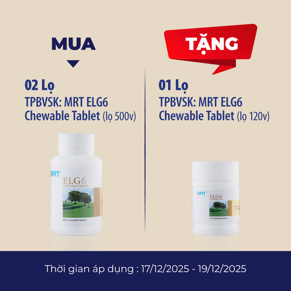 MUA 02 TPBVSK MRT ELG6 CHEWABLE TABLET (LỌ 500 VIÊN) - TẶNG 01 TPBVSK MRT ELG6 CHEWABLE TABLET (LỌ 120 VIÊN)