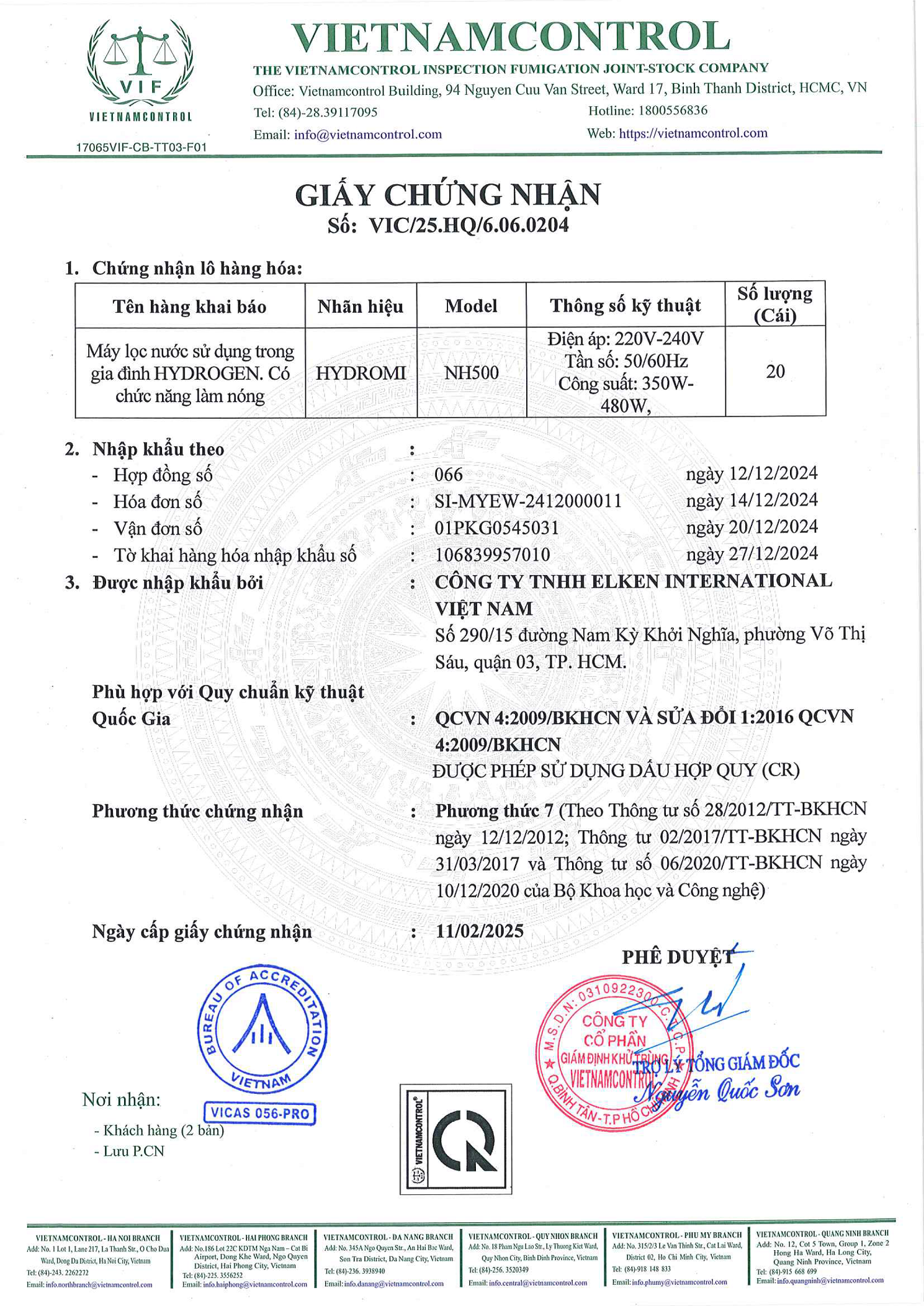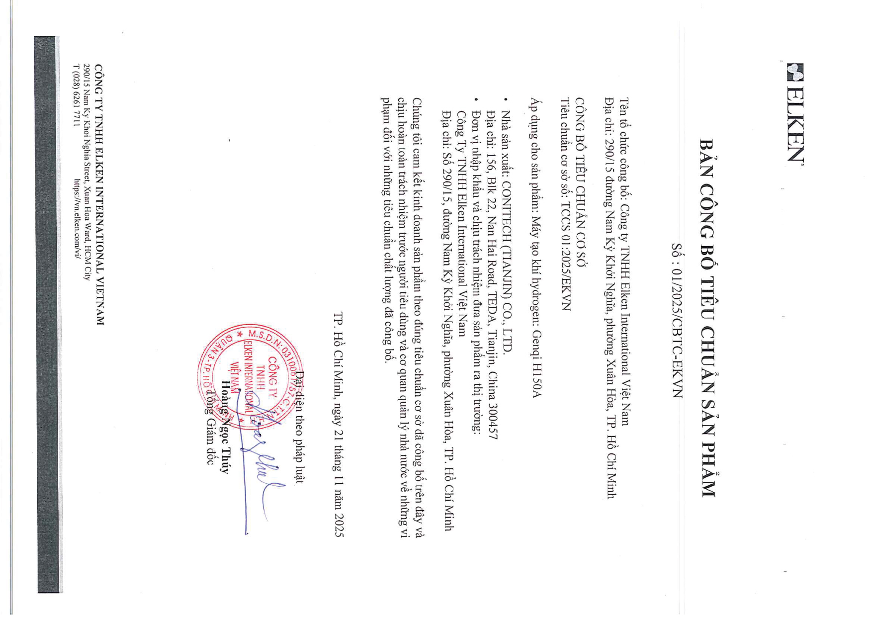 - Máy lọc nước Hydrogen: Hydromi NH500, Máy tạo khí Hydrogen: Genqi H150A: Xuất xứ: Trung Quốc. Nhà sản xuất: Conitech (Tianjin) Co., Ltd. Địa chỉ: 156, Blk 22, Nan Hai Road, TEDA, Tianjin, China 300457.